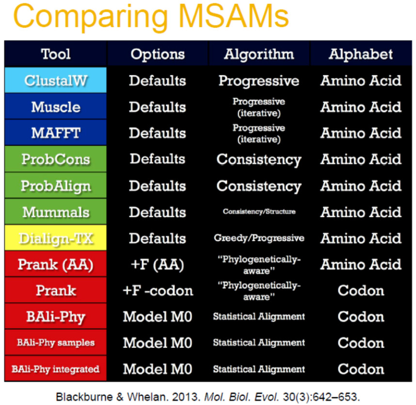 2013年,Blackburne等人在《Molecular Biology and Evolution》期刊发表他们的研究成果,该成果证明了MSA方法在下游分析中的关键作用,突出了在分析中选择的不同的MSA软件对其结果有明显的影响。