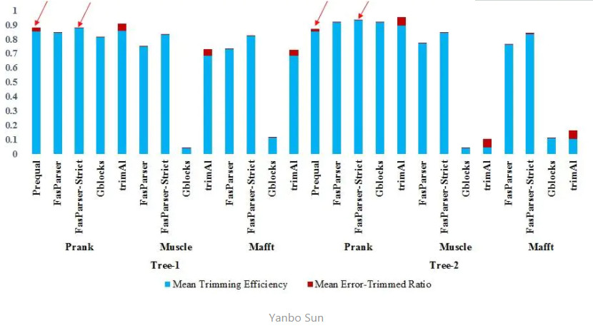 目前主流的多序列比对过滤软件可分为以下几个方面:一是,block-filtering:trimAl、Gblocks;二是,segment filtering:HmmCleaner、PREQUA;三是,sliding window analysis:FasParser2。
