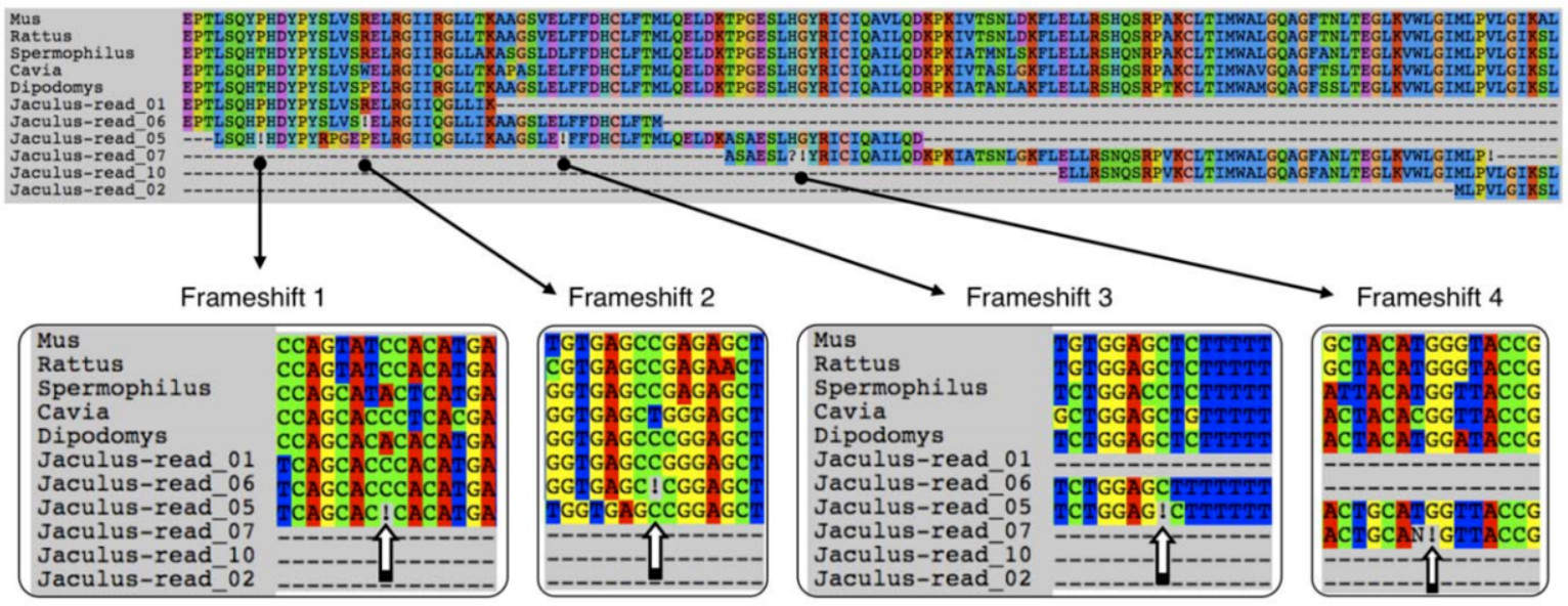 MACSE是第一个可以用于自动调整含有移码变异以及假基因的蛋白编码序列,而不破坏潜在密码子结构的多序列比对工具(Ranwez et al. 2011)。它的关键特征是在核苷酸水平上对DNA序列进行比对,但有可能包括不是三个碱基的倍数的间隙长度,即产生移码,同时基于其氨基酸翻译对产生的核苷酸比对进行评分。这使得可以产生保留潜在密码子结构的核苷酸比对,同时受益于氨基酸序列的更高相似性(Ranwez et al. 2018)。现在,这个软件已被许多基因组分析所广泛使用,其准确度也相对较好,然而目前并没有研究去仔细分析过它的性能。