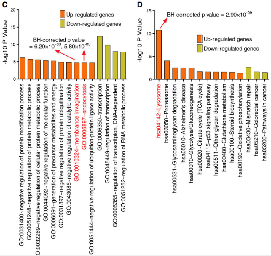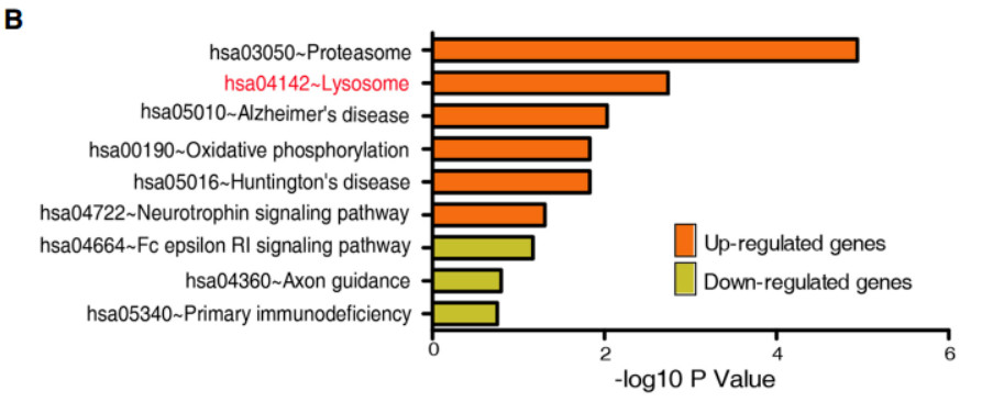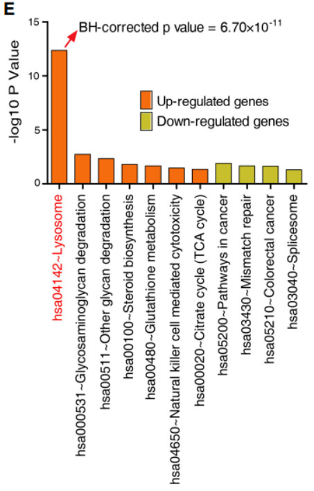 重要的是,在对1193个符合BH校正p值的SDEGs进行富集分析后,我们发现溶酶体途径在612个上调基因中得到了丰富。